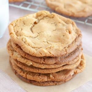 I grew up loving butterscotch desserts. My mom would make butterscotch pie and my mother-in-law makes these delicious butterscotch brownies. These cookies are a new favorite with their amazing texture and flavor.
