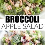 My broccoli apple salad recipe is made with a combination of savory and sweet ingredients. Fresh, crunchy broccoli and sweet apples are combined with a simple creamy dressing making this salad an easy, delicious side dish. This recipe can be made in less than 15 minutes and it’s full of flavor in every bite.