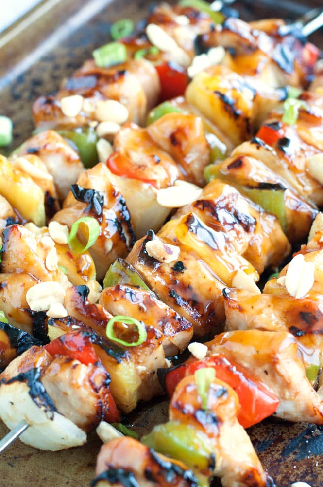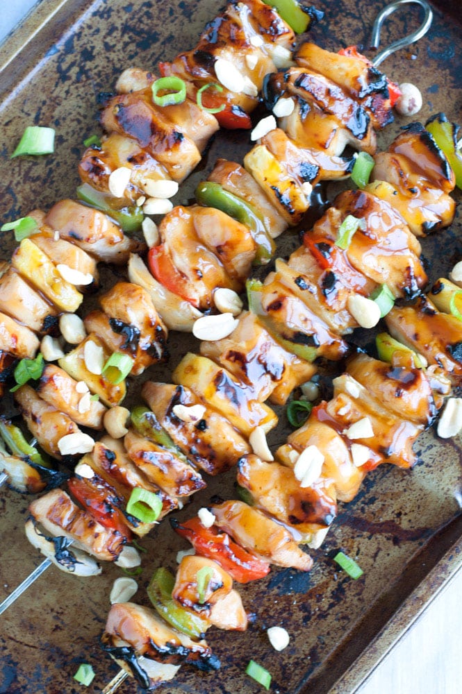 Kung Pao Chicken Skewers filled with chicken, peppers, onions and pineapple, coated in Kung Pao sauce – Asian cuisine made simple.