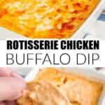 No need for canned chicken, this rotisserie chicken buffalo dip is made with fresh, flavorful shredded rotisserie chicken.