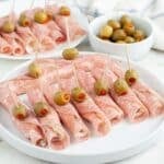 Salami roll ups are an easy party appetizer that can be made in minutes. Cream cheese, salami, and seasoning, these salami roll ups are easy to customize and great for holidays, game day, and more.